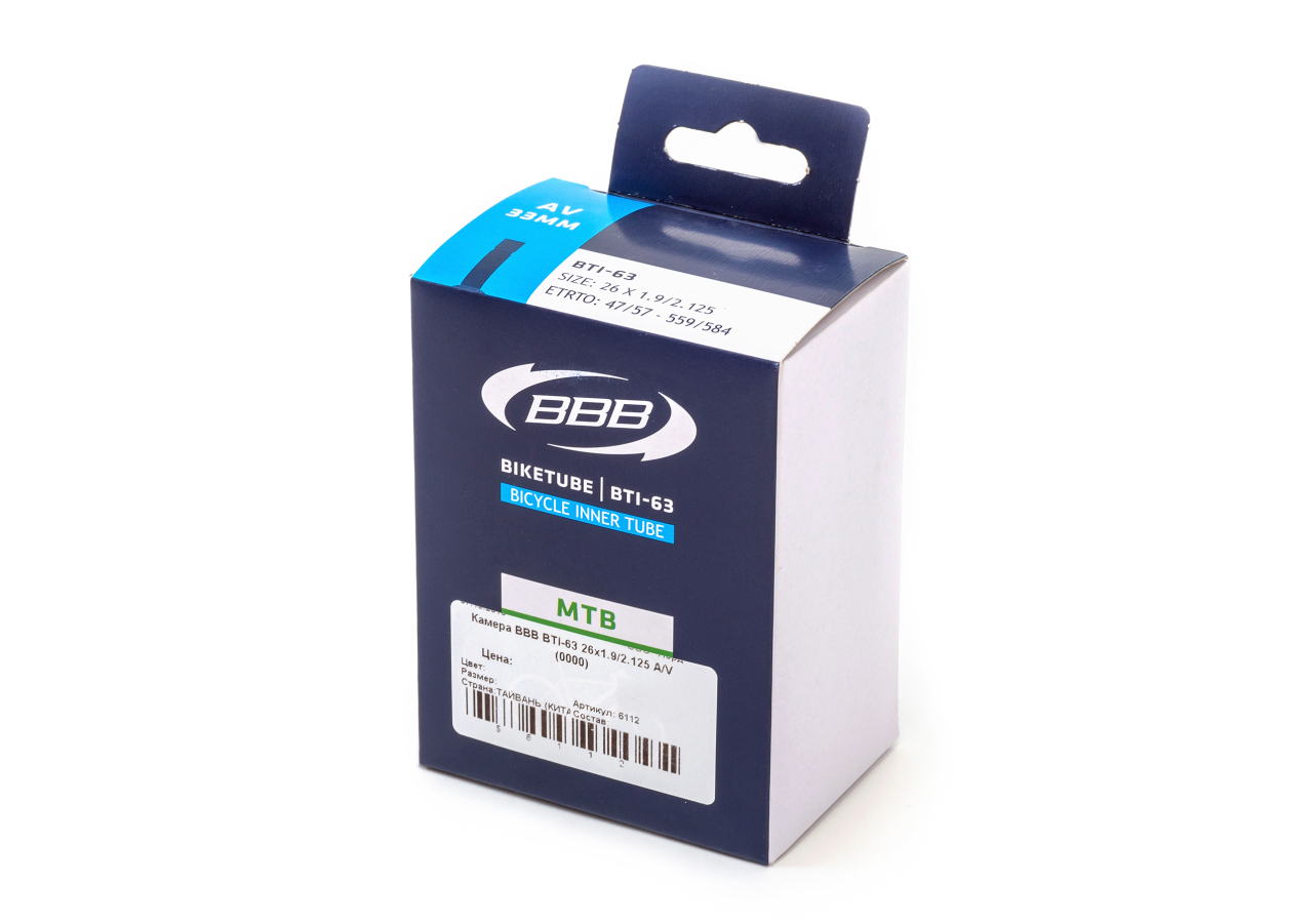 BBB BTI-63 - прочная бутилкаучуковая камера для MTB, городских, комфортных, складных велосипедов. Обладает размером 26" и, за счет хорошей тягучести резинового состава, внушительным диапазоном ширины - от 1,9" до 2,125". Ниппель AV, рассчитана для установки с ободами под автомобильный ниппель (Schrader). Ниппель имеет длину 33 мм, хорошо удерживает давление, резиновый состав имеет толщину 0,81 мм, устойчива к проколам и легко поддается заклейке. Камера рассчитана на посадочный размер 49/56-559.